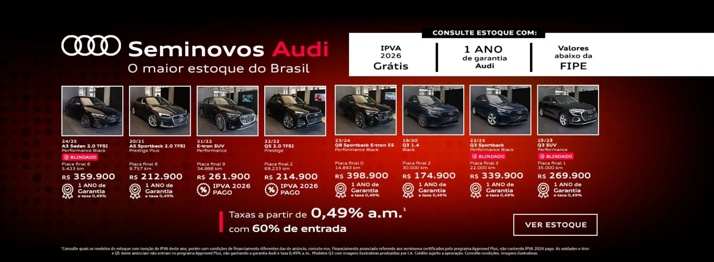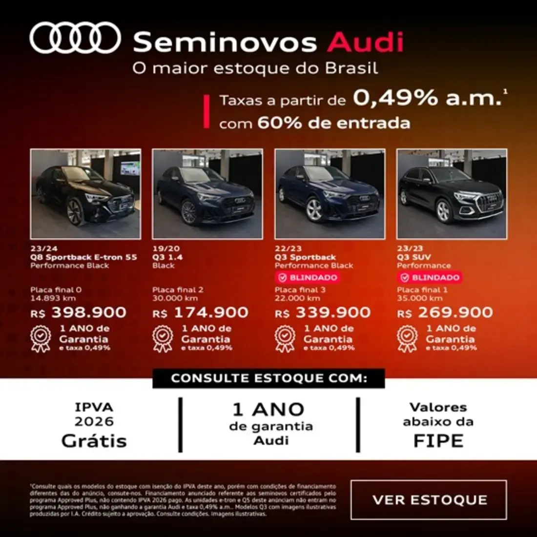 Maior concessionária Audi do Brasil, líder em vendas da marca há mais de uma década. Veículos Audi novos e seminovos. Temos certeza que aqui, encontrará o que precisa. Nossos serviços autorizados Audi incluem desde funilaria e pintura para grandes e pequenos reparos à peças originais, assim como serviço especializado para financiamento, auxiliando-o na compra do carro dos seus sonhos. Estamos localizados na cidade de São Paulo. Ligue-nos ou venha nos fazer uma visita.
